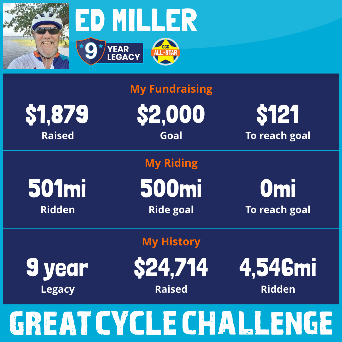This September I will participate for the 9th time in the Great Cycle Challenge to fight kids' cancer!