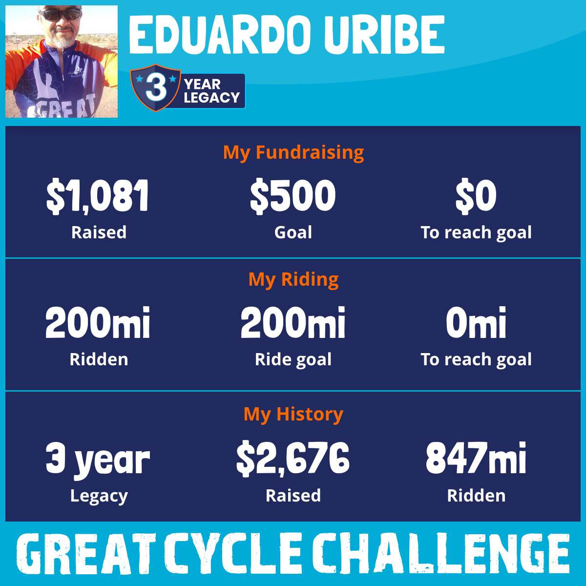 200 mi Ridden$1,081 Raised2025