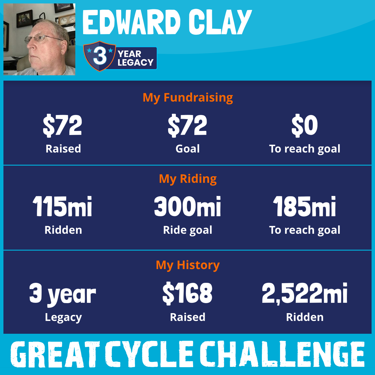 1,432 mi Ridden$60 Raised2020