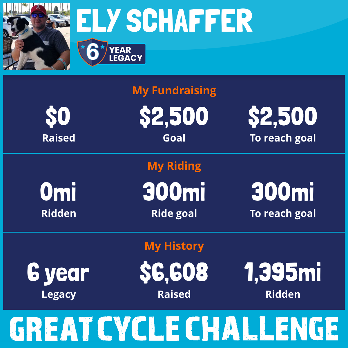 I've raised $0 My goal is $2,500 Donate Now