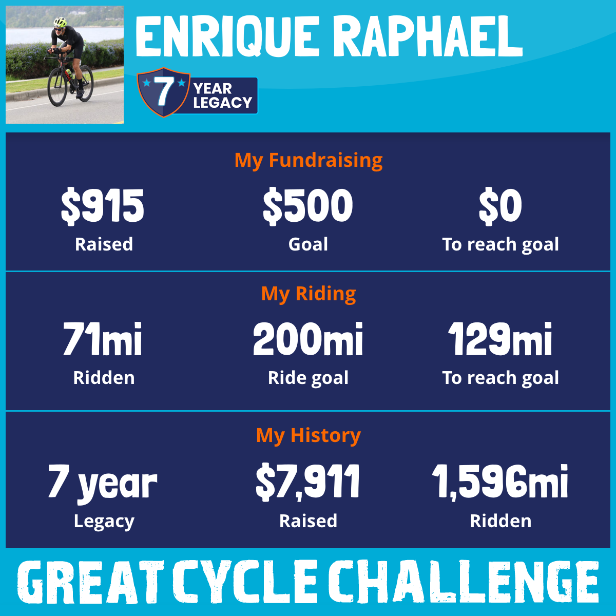 620 mi Ridden$458 Raised2021