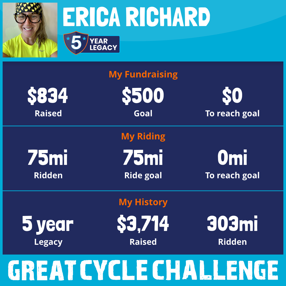 75 mi Ridden$834 Raised2025