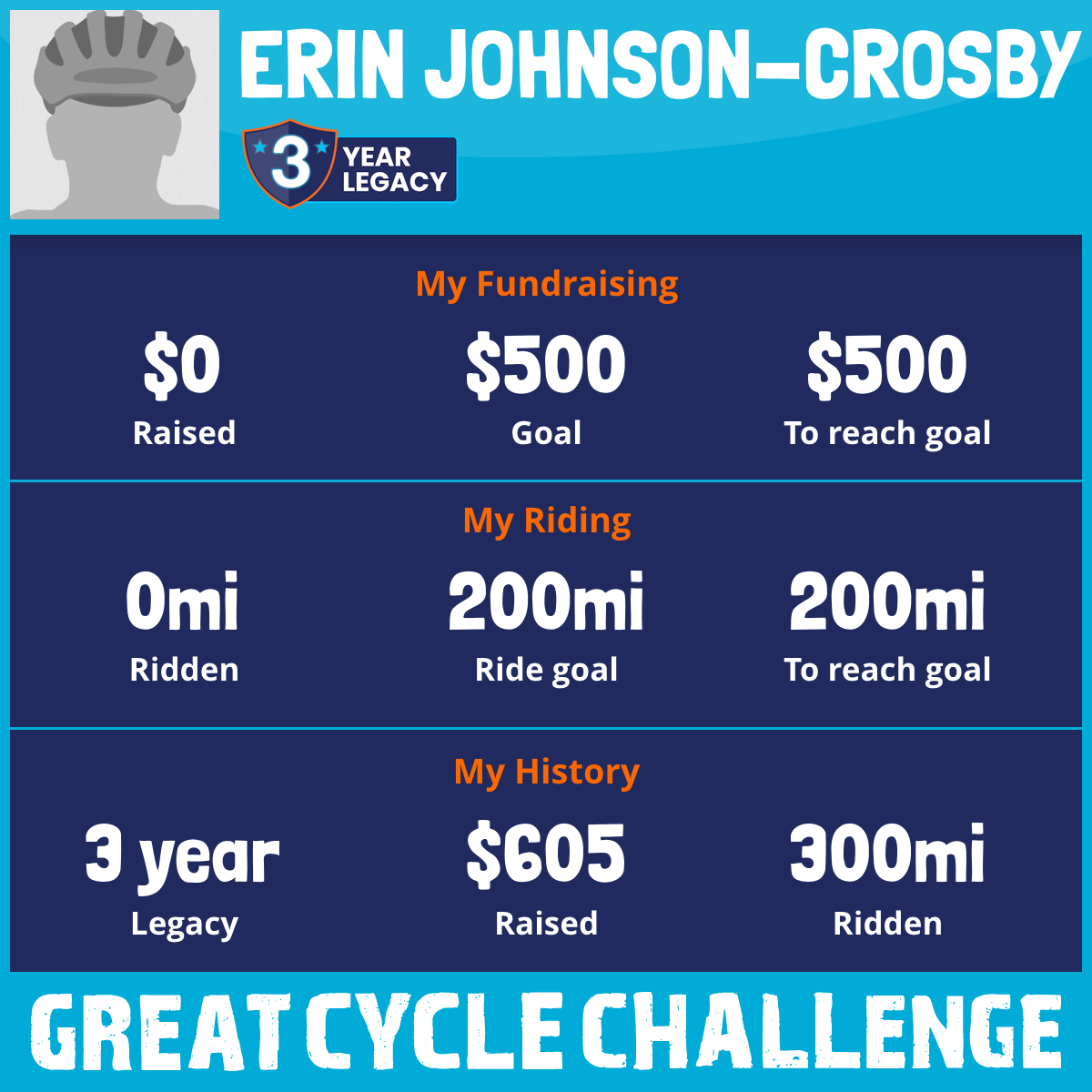 300 mi Ridden$605 Raised2020