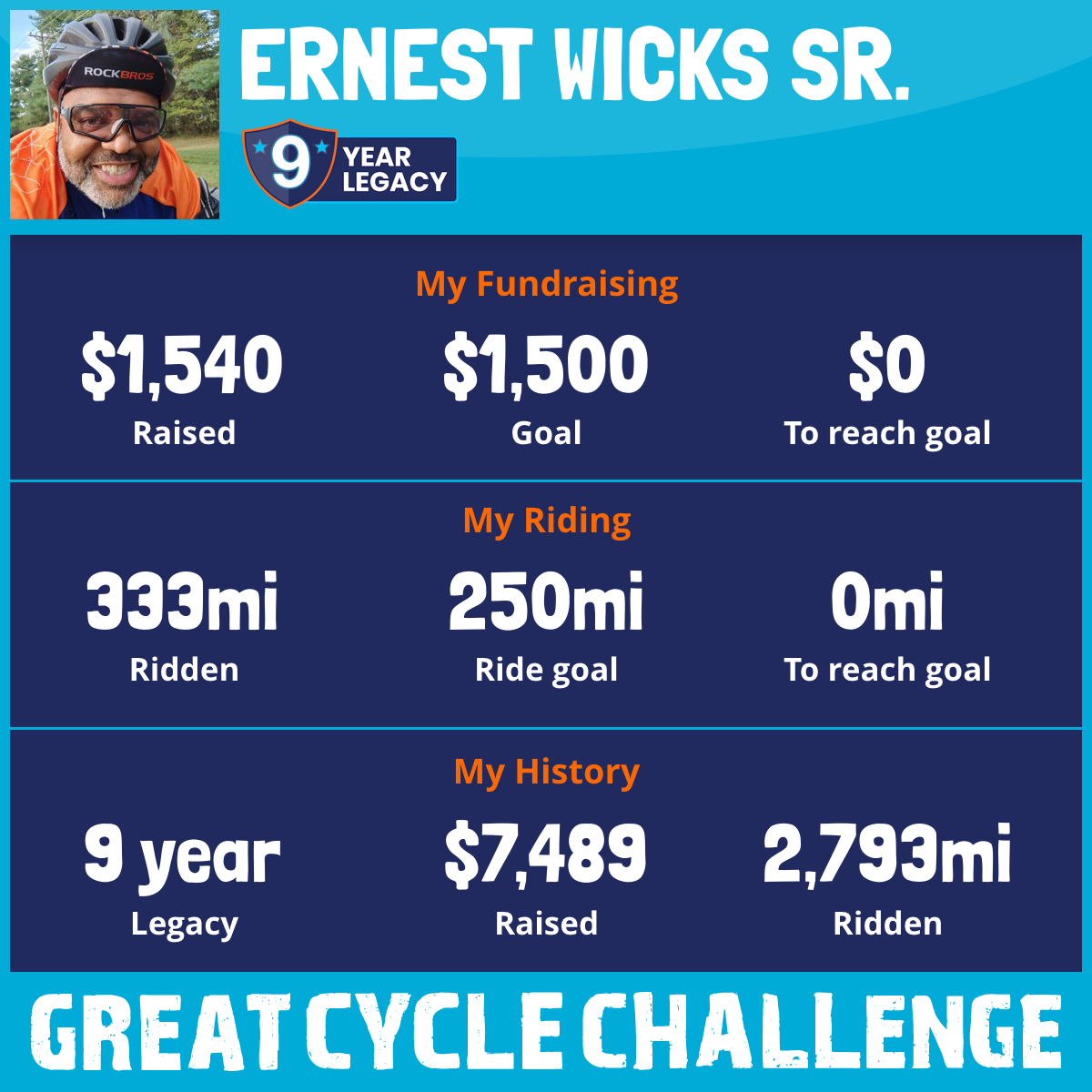 333 mi Ridden$1,540 Raised2025