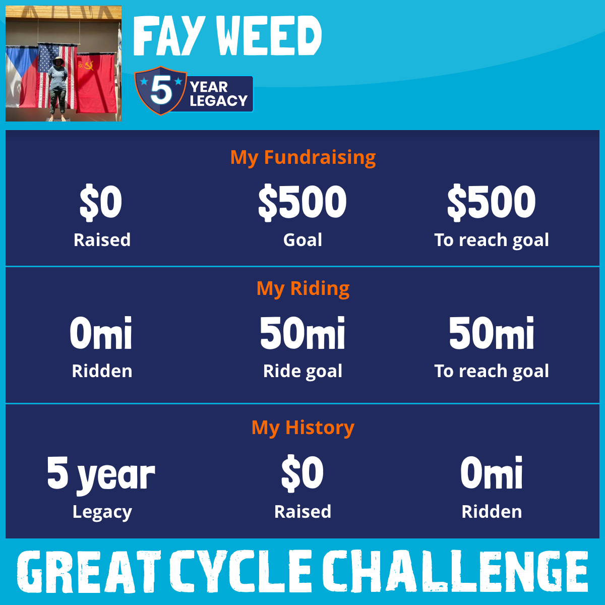 I am riding 50 mi for Madonna. Please sponsor me and support my challenge to fight kids' cancer and save little lives.