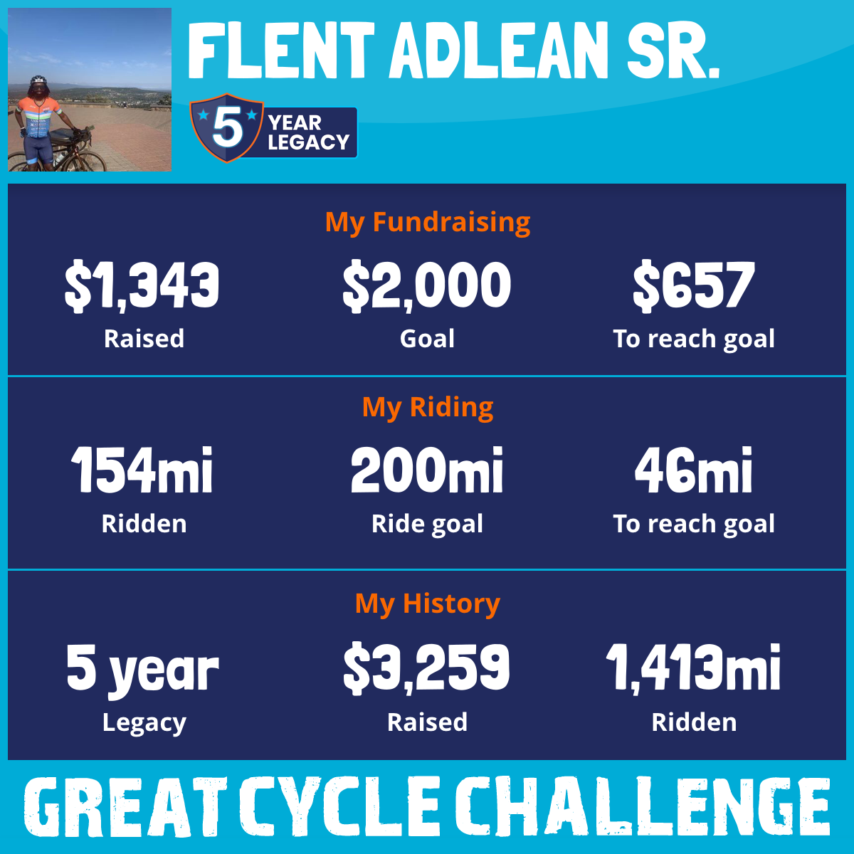 154 mi Ridden$1,343 Raised2025