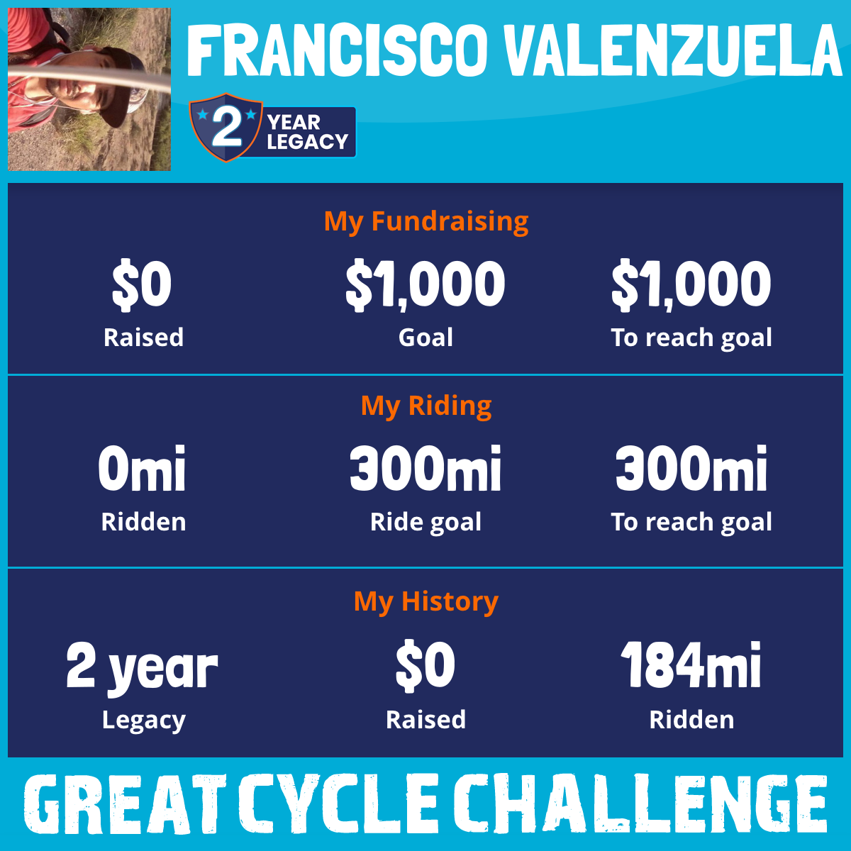 I am riding 300 mi in memory of Maria E valenzuela. Please sponsor me and support my challenge to fight kids' cancer and save little lives.