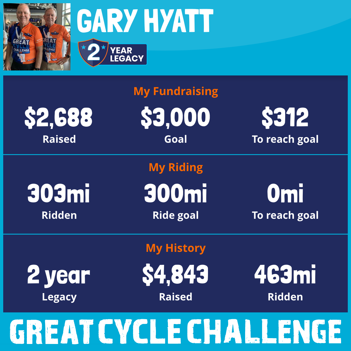 I will be riding 300 miles in the month of September, not on an e-bike, not even a 15 speed road bike, but on an old beach cruiser. Please help me raise $3000. As in years past, I will be personally matching the first $500 raised.