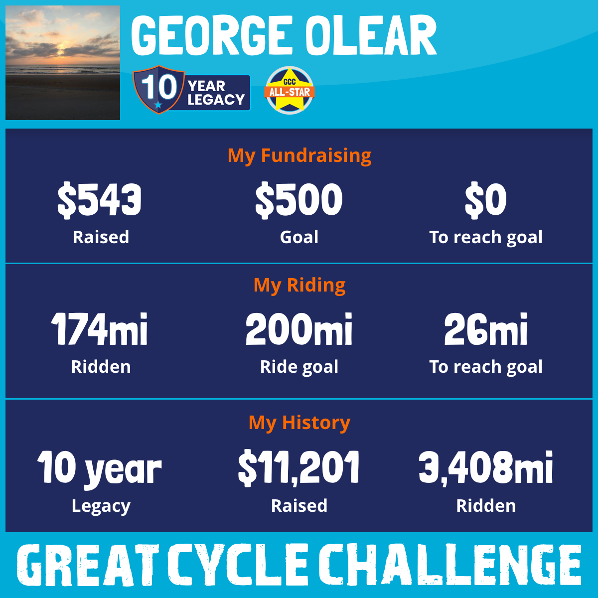 I am riding 200 mi in memory of JSO. Please sponsor me and support my challenge to fight kids' cancer and save little lives.