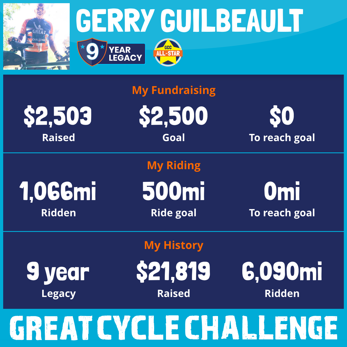 1,066 mi Ridden$2,503 Raised2025