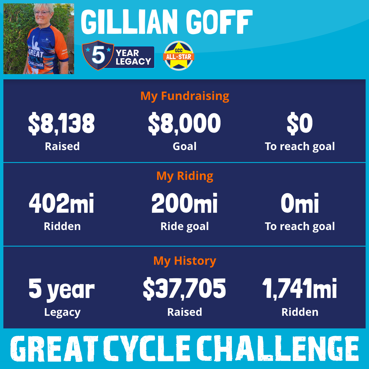 402 mi Ridden$8,138 Raised2025