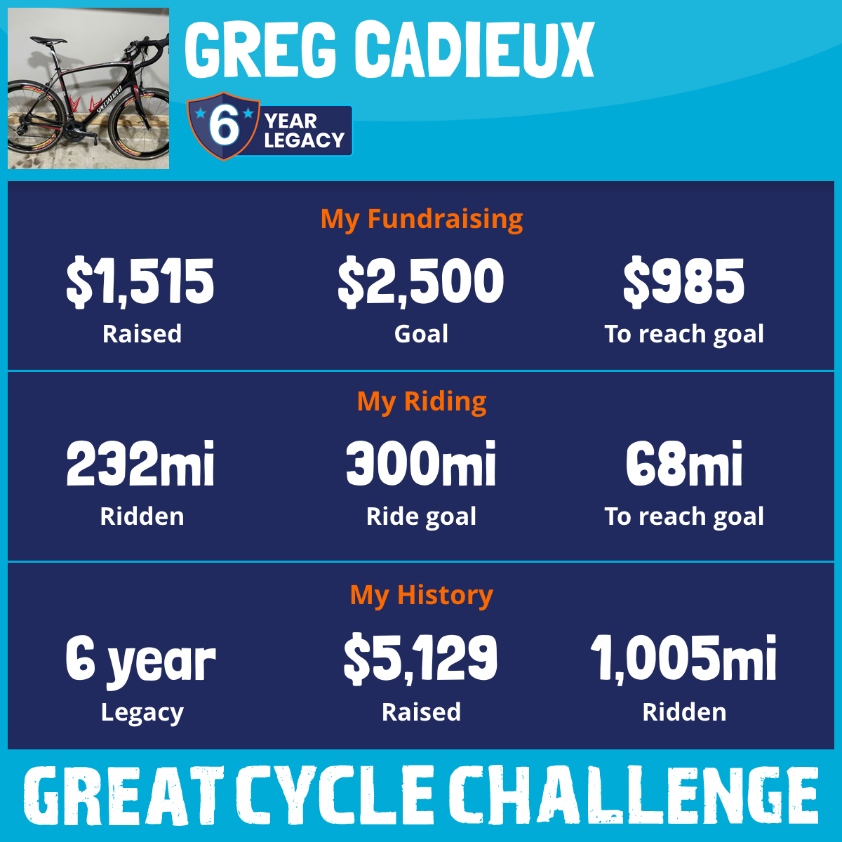 It is my personal goal to ride 300 miles during the month of September and raise at least $1,000 for this great cause.