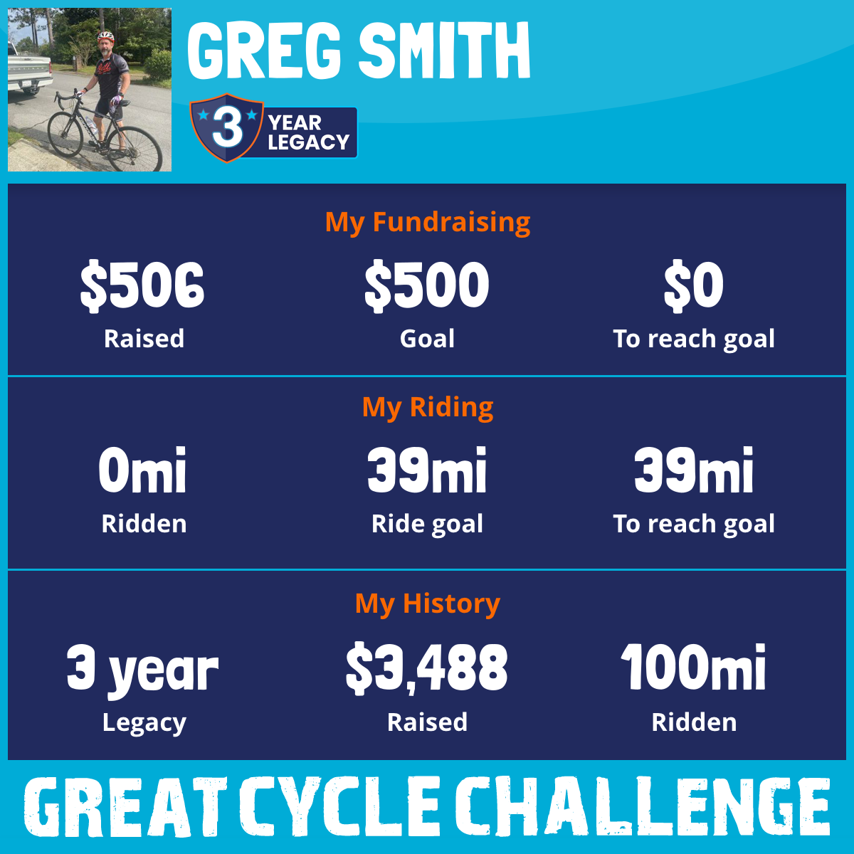 20 mi Ridden$1,609 Raised2024