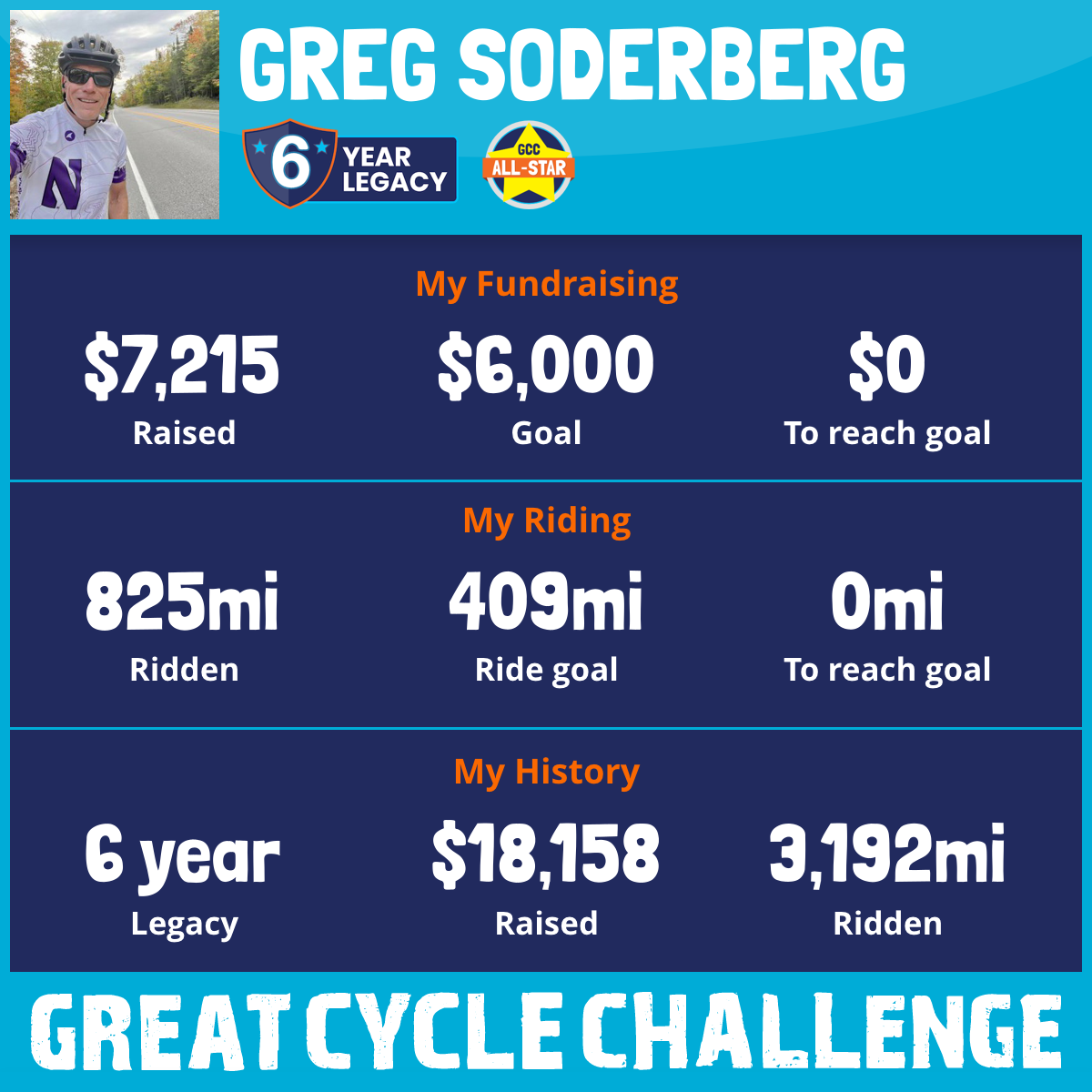 I am taking part in September's Great Cycle Challenge to fight kids' cancer! My goal is to ride 409 miles, the North to South length of Minnesota and am asking those who can - to donate to a great cause and/or keep those kids, care givers and researchers fighting cancer in your prayers. THANK YOU!