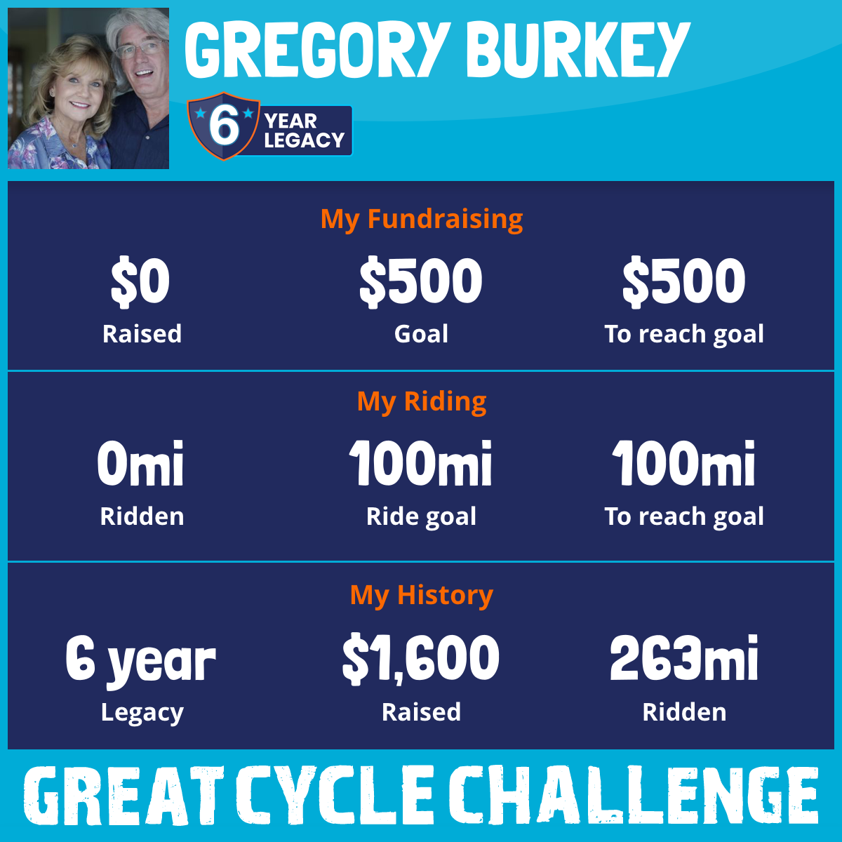 I've raised $0 My goal is $500 Donate Now
