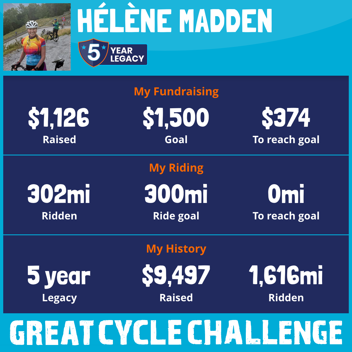 302 mi Ridden$1,126 Raised2025