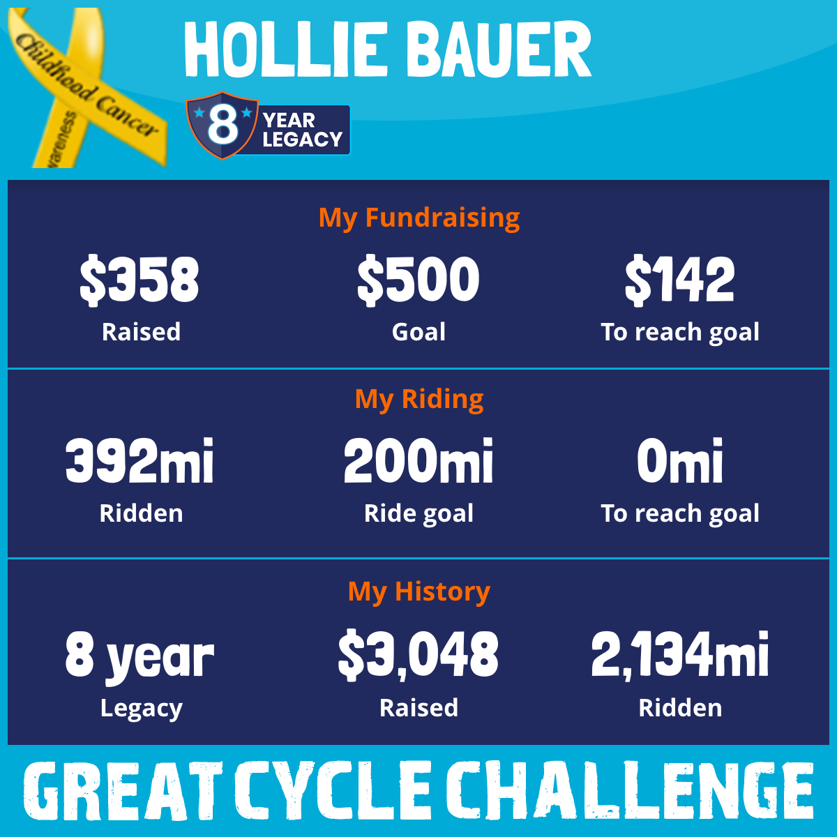 This September, I am once again taking part in the Great Cycle Challenge to help fight pediatric cancer!