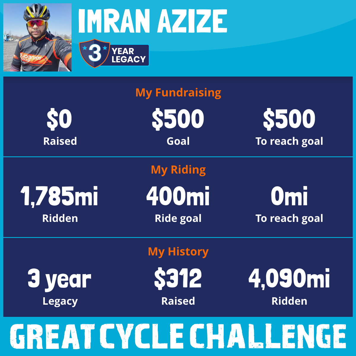 I am riding 400 mi for Bibi Harjoon. Please sponsor me and support my challenge to fight kids' cancer and save little lives.