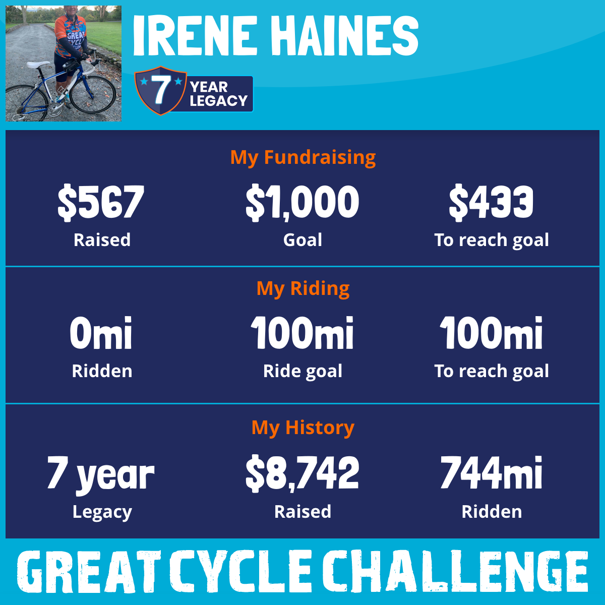 109 mi Ridden$1,808 Raised2021