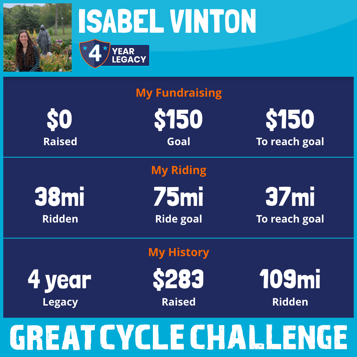 I am riding in memory of a fellow student and dear friend, Isabella Auer, who bravely battled DIPG, an untreatable brain cancer, for a year and passed at the young age of seventeen. Among her friends, she is known as the Girl with the Golden Heart.💛