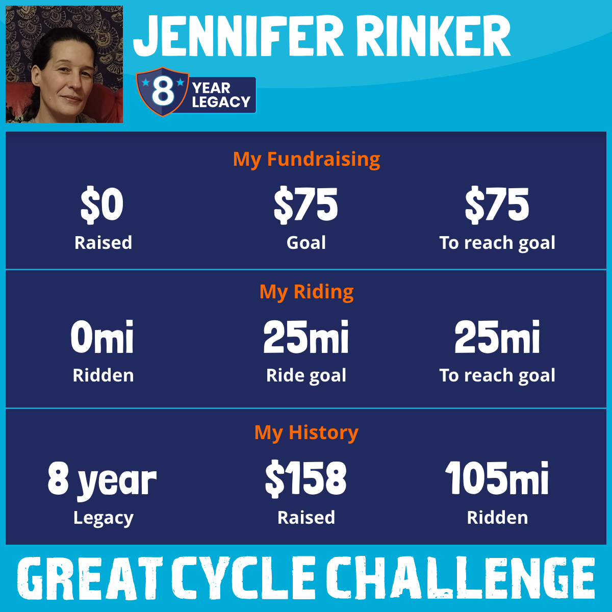 I am riding 25 mi in memory of Sheldon Rinker. Please sponsor me and support my challenge to fight kids' cancer and save little lives.