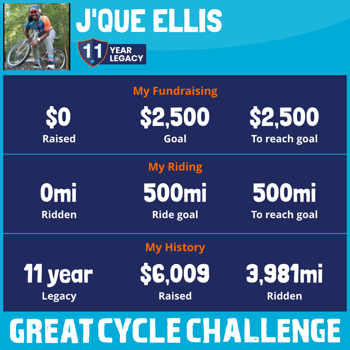 I am riding 500 mi for Everybody. Please sponsor me and support my challenge to fight kids' cancer and save little lives.