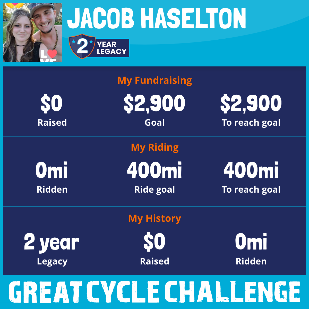 I am riding 400 mi in memory of my brother, Jared Haselton. Please sponsor me and support my challenge to fight kids' cancer and save little lives.