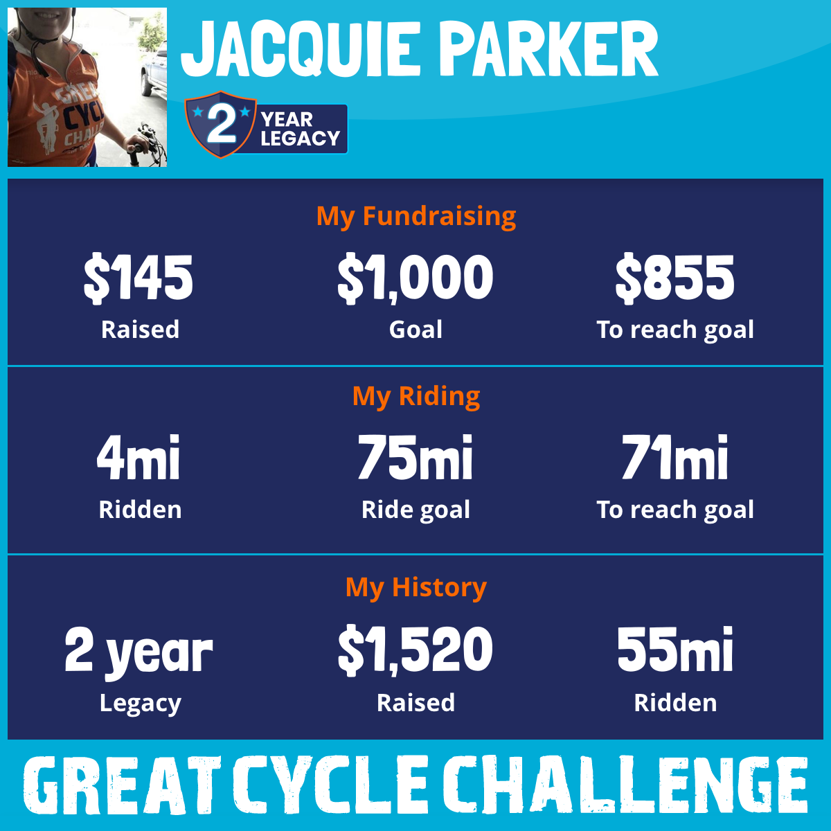 52 mi Ridden$1,375 Raised2017