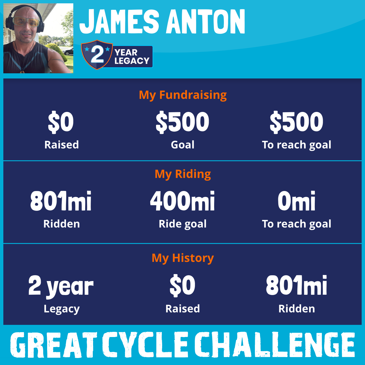 I am riding 400 mi for Nobody. Please sponsor me and support my challenge to fight kids' cancer and save little lives.