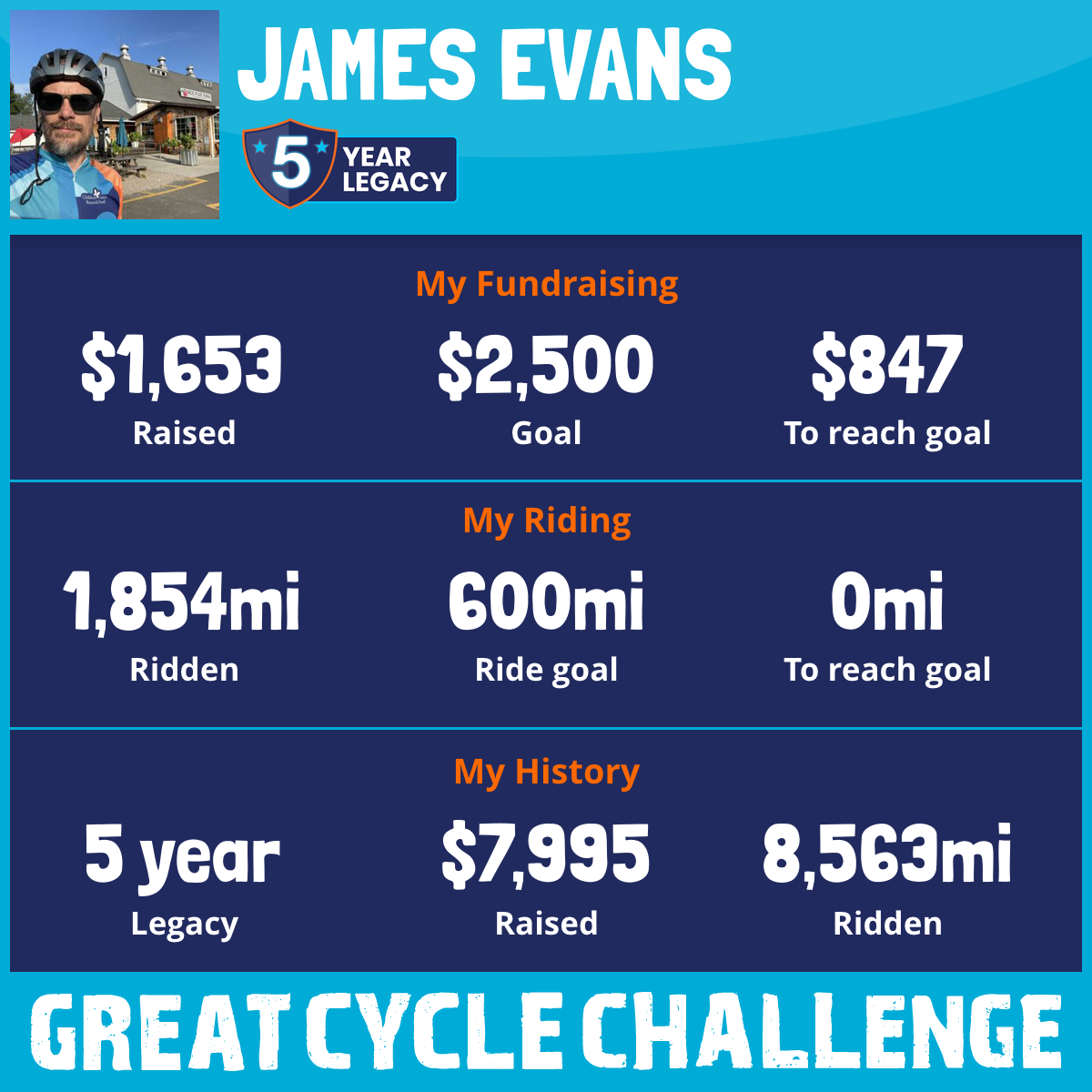 I am riding 600 mi in memory of My Cousin. Please sponsor me and support my challenge to fight kids' cancer and save little lives.
