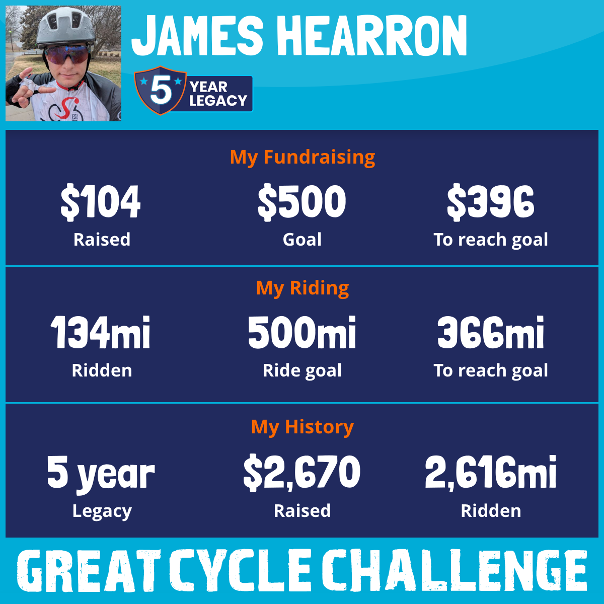 This September, I am taking part in the Great Cycle Challenge to fight kids' cancer! This year I am going to set a reasonable goal. Please help me make year 3 of my GCC campaign a success!