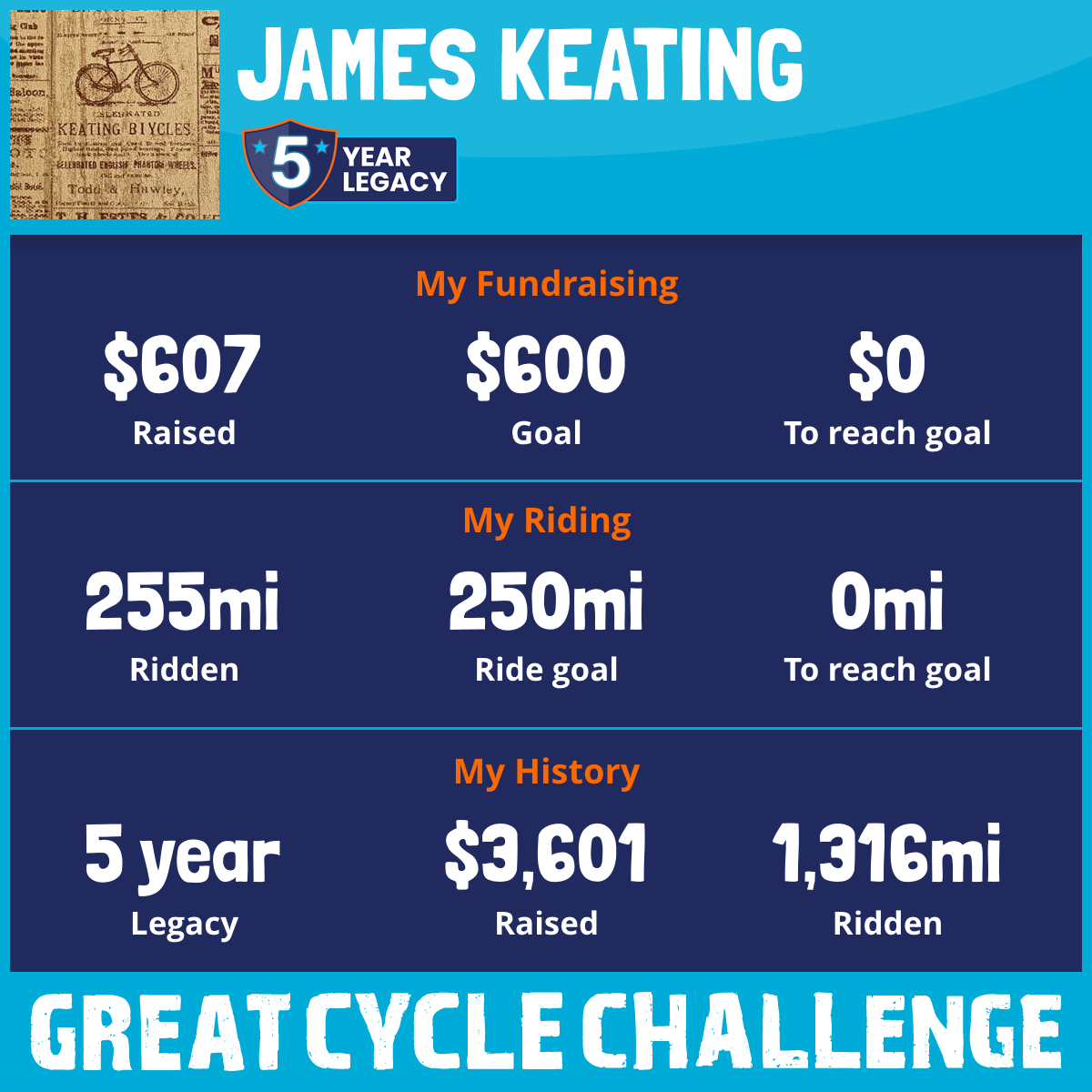 This September, I am taking part in the Great Cycle Challenge to fight kids' cancer! This is my third year doing this and any donations you can provide are greatly appreciated.