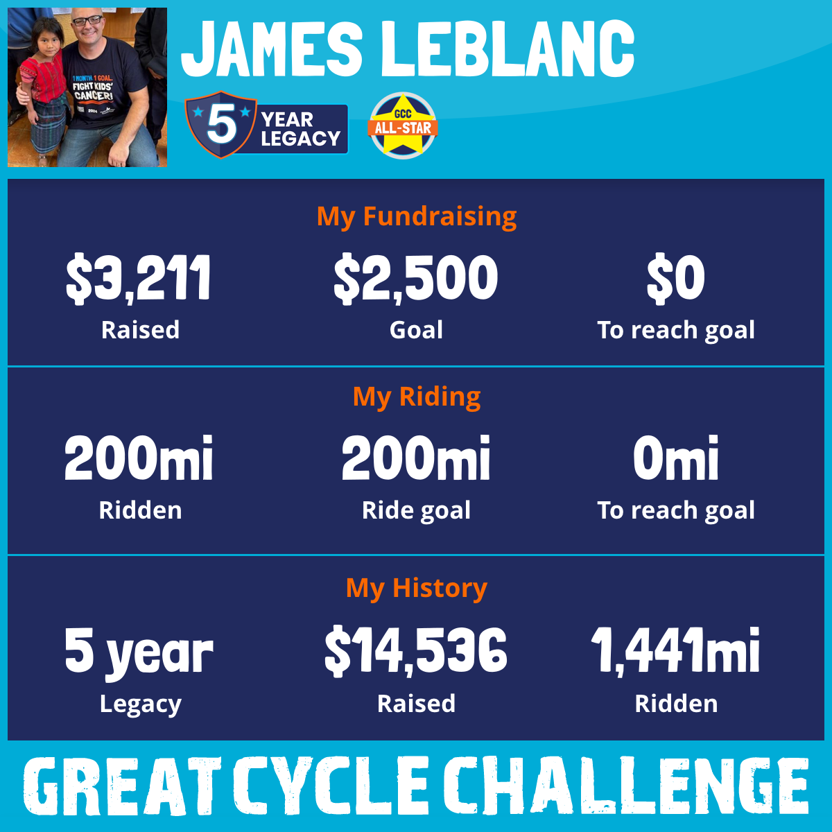 For the 5th year in a row, I am taking part in the Great Cycle Challenge to fight kids' cancer!