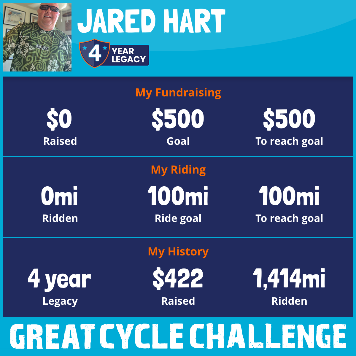 I've raised $0 My goal is $500 Donate Now