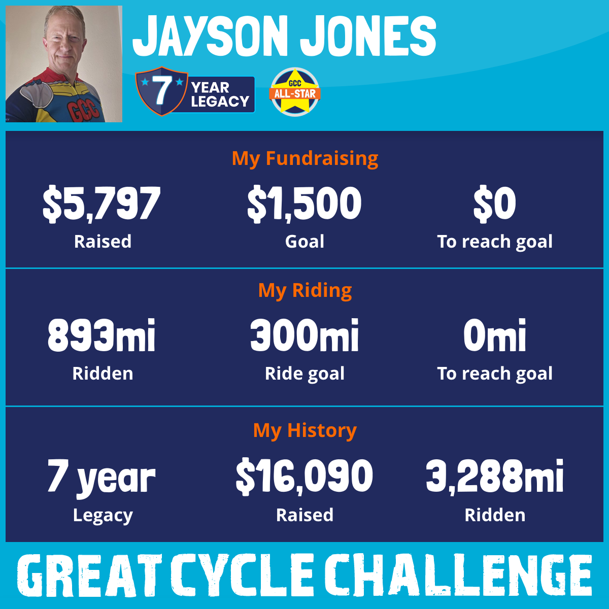 893 mi Ridden$5,797 Raised2025