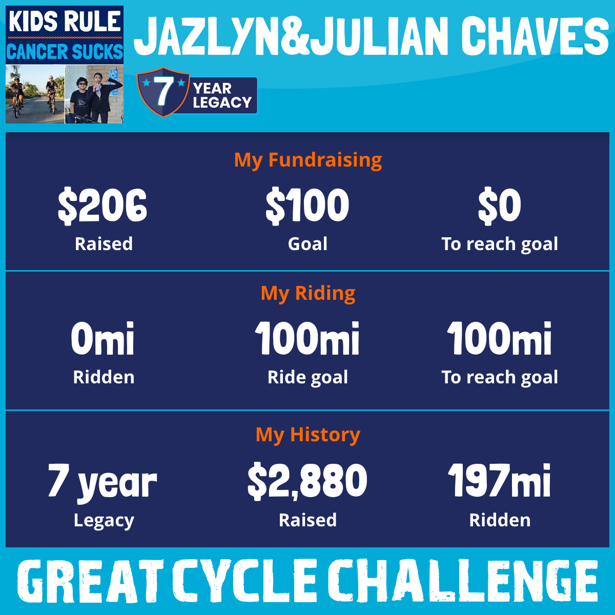 I am riding 100 mi in memory of Chavi. Please sponsor me and support my challenge to fight kids' cancer and save little lives.