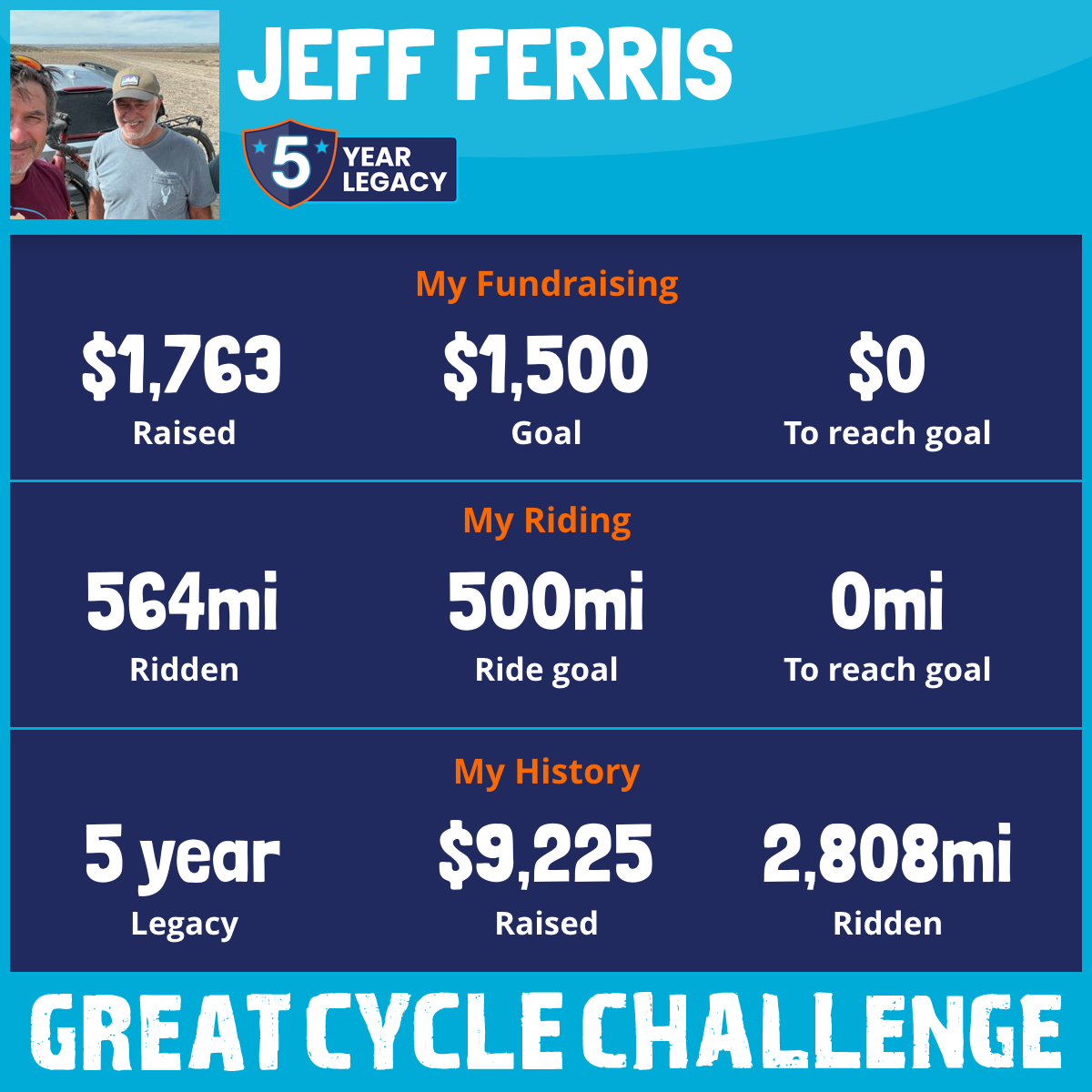 Jim fought a long, brave battle against this terrible disease. Through it all he remained an ardent supporter of the Great Cycle Challenge, riding for the kids and encouraging others to do the same. I miss my dear friend and ride every mile in his memory.