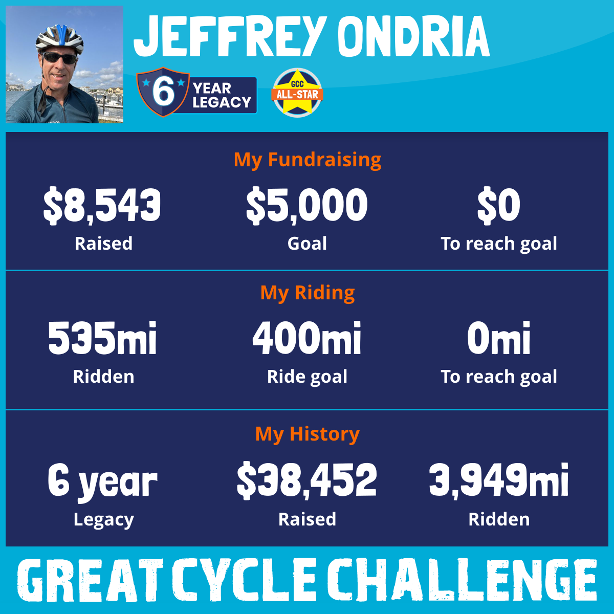 Over the next 30 days I'll ride both virtually and on the road to reach my goal of 800 miles, with a combination of road & virtual rides. Funds raised through my challenge will help these kids and support Children's Cancer Research Fund to allow them to continue their work developing lifesaving treatments and to find a cure for childhood cancer.