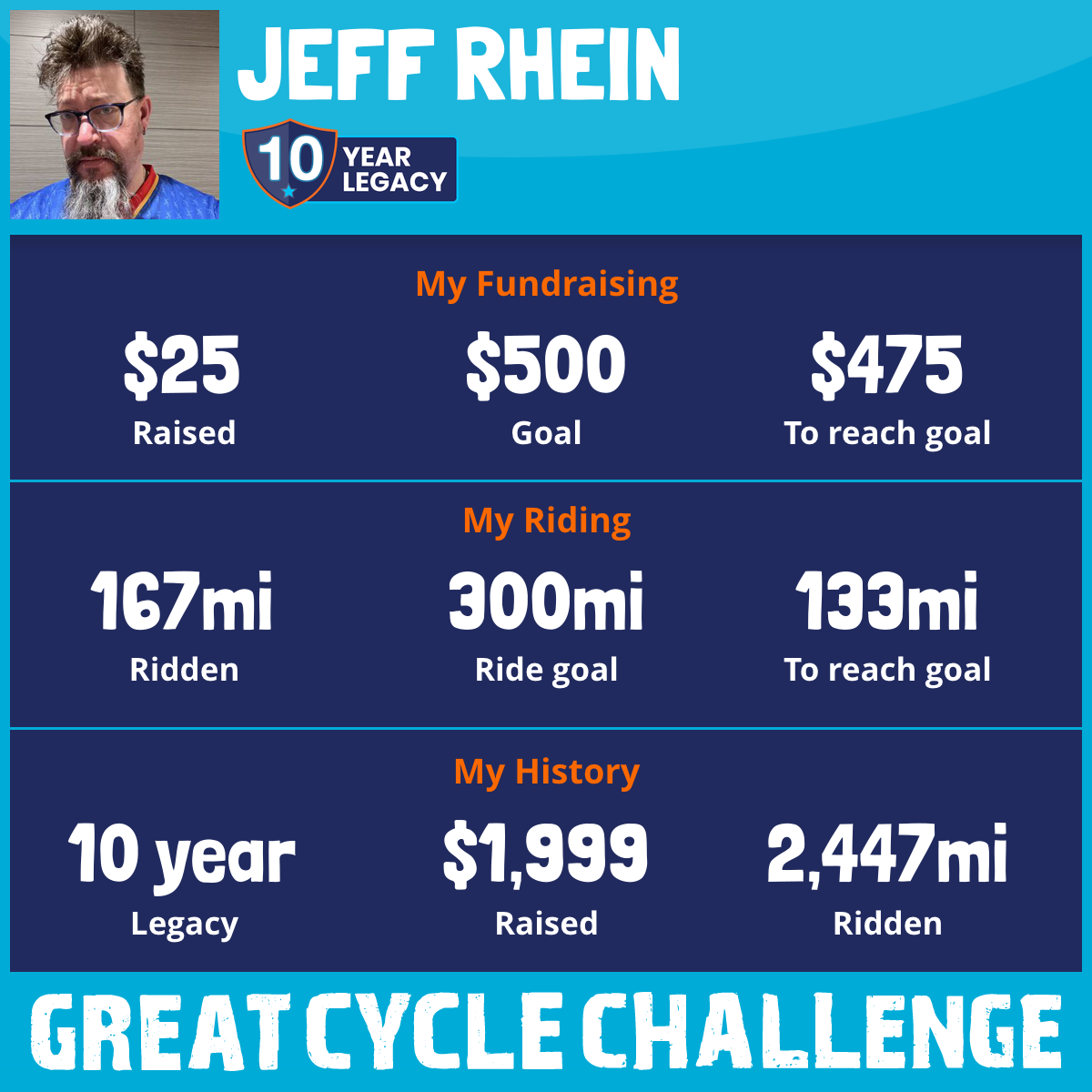 I am riding 300 mi in memory of Arlene Rhein. Please sponsor me and support my challenge to fight kids' cancer and save little lives.