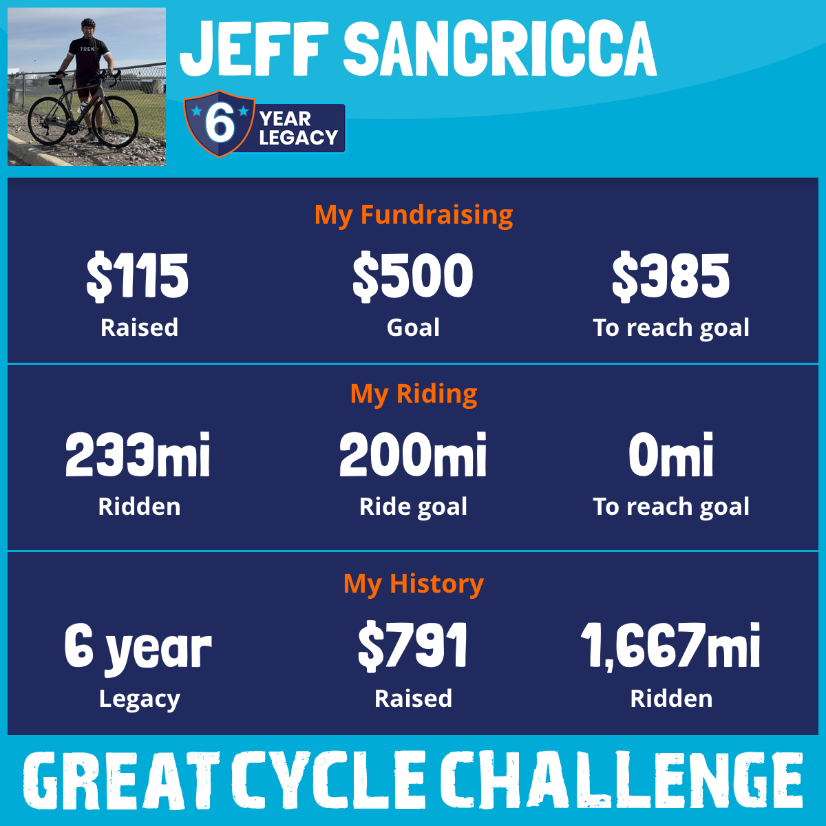I am riding 200 mi in memory of Lynda Sancricca. Please sponsor me and support my challenge to fight kids' cancer and save little lives.