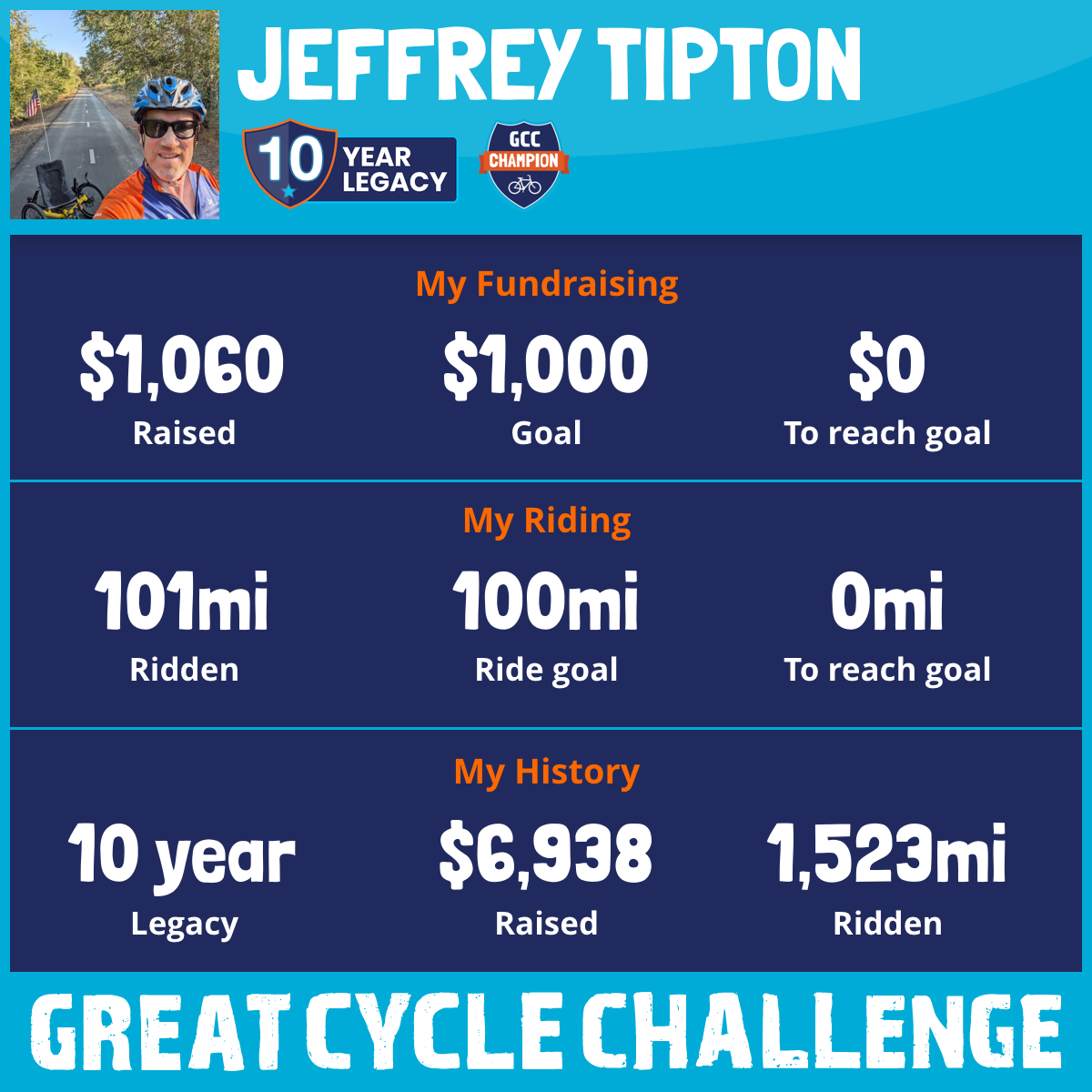 101 mi Ridden$1,060 Raised2025