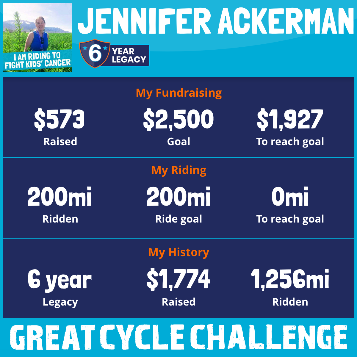 I am riding 100 mi to fight kids' cancer and save little lives. Please sponsor me to support my challenge!