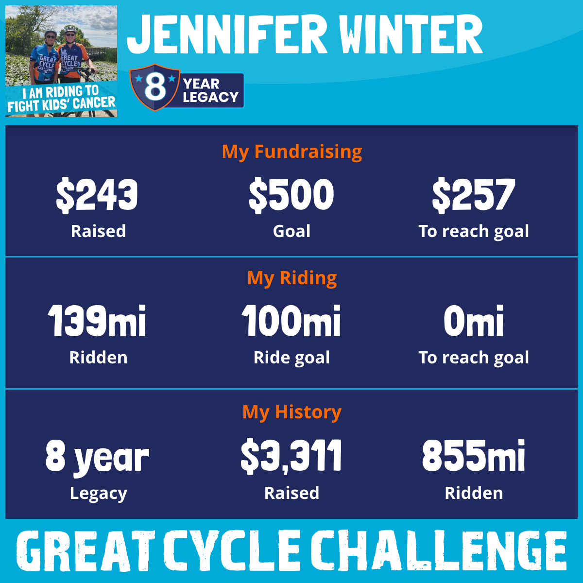 I am riding 100 mi to fight kids' cancer and save little lives. Please sponsor me to support my challenge!