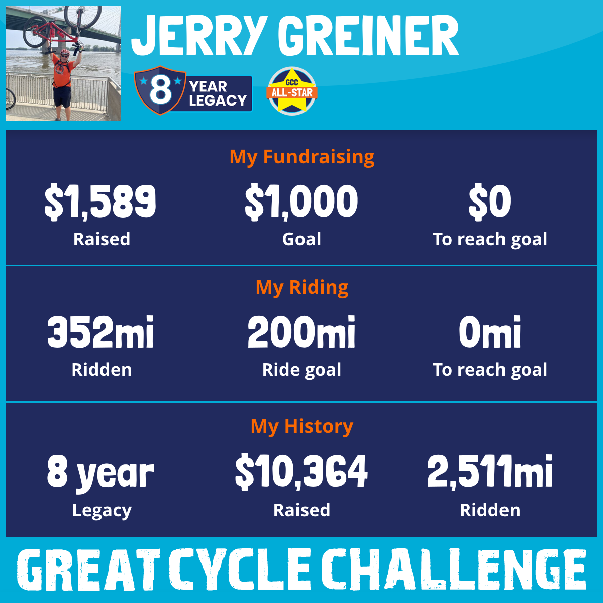 352 mi Ridden$1,589 Raised2025