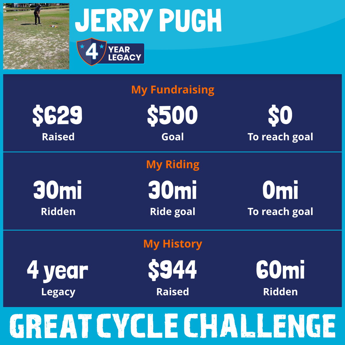 I am riding 30 mi for Sandy Pugh. Please sponsor me and support my challenge to fight kids' cancer and save little lives.