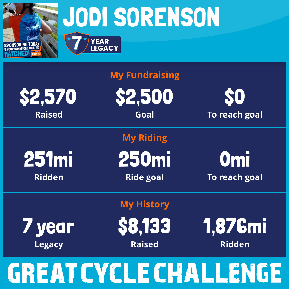 I just raised $2,500 to fight kids' cancer and achieved SUPERHERO LEVEL in the challenge! Thank you so much for your support.