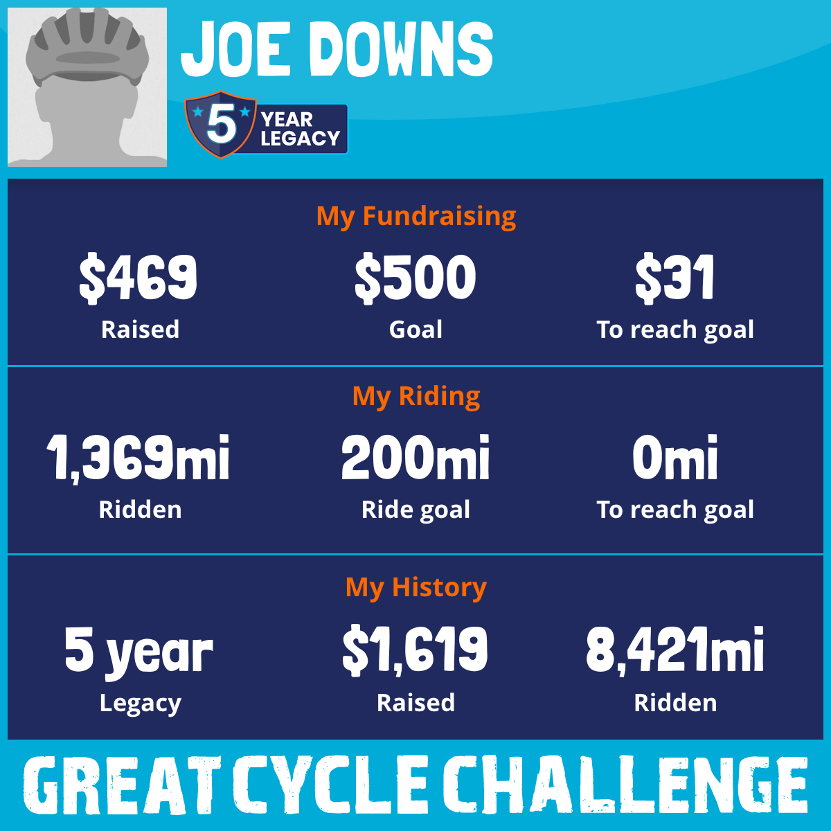 I am riding 200 mi for Marcia Downs. Please sponsor me and support my challenge to fight kids' cancer and save little lives.