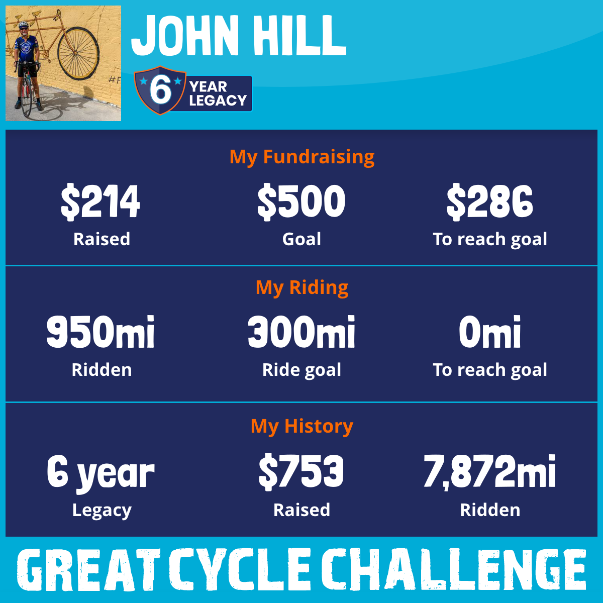 I am riding 300 mi for Anne Hill. Please sponsor me and support my challenge to fight kids' cancer and save little lives.