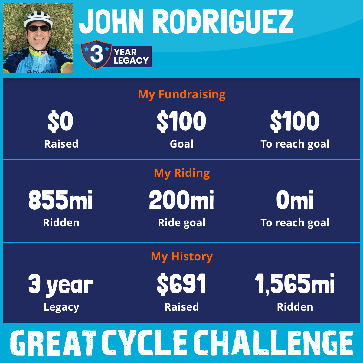 I am riding 200 mi for John Renard. Please sponsor me and support my challenge to fight kids' cancer and save little lives.