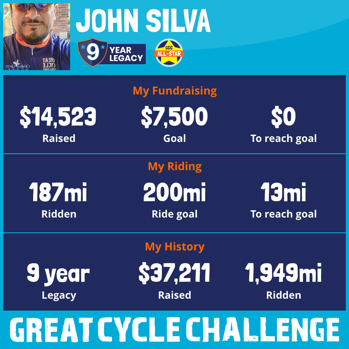 187 mi Ridden$14,523 Raised2025